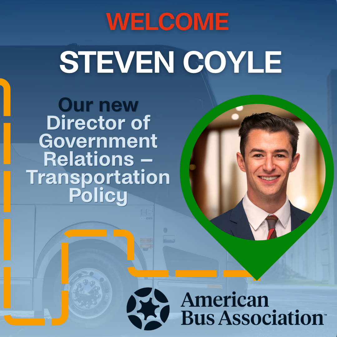 The American Bus Association (ABA) welcomes Steven Coyle, who joins the Association as Director of Government Relations – Transportation Policy, completing a major buildout of ABA’s advocacy team and further reinforcing the Association’s voice in Washington on behalf of the bus and group travel industry.
